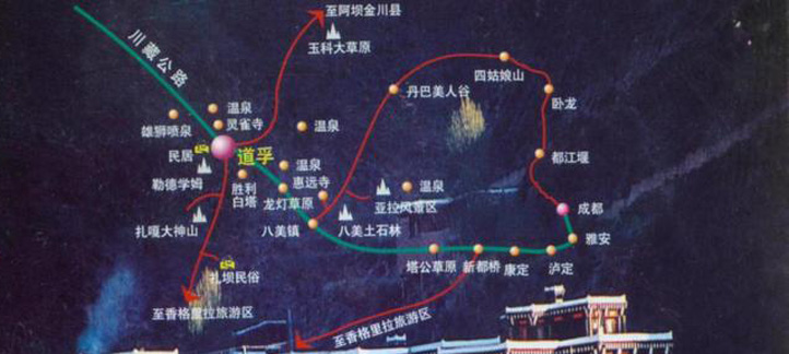 成都、映秀、臥龍、巴郎山、日隆、四姑娘山、丹巴、八美、道孚、爐霍、色達、色達佛 |