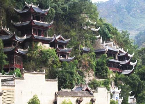 從成昆鐵路路經米易掛榜鄉,憑窗西望,萬綠從中,一座紅色亭閣亭亭玉立,它便是攀枝花市的省級文件保護單位望月樓。望月樓以木構榫結,四方形底層及上兩層六方形樓閣,六角攢尖頂有機連結,承托得四平八穩。雖經二百年風雨和道光三年、十年、十三年三次大地震而保存至今。十分難得。作為早期的清真寺建筑,它既具有宗教文物性質,又因其設計獨特,構思巧妙,一樓多用,為省內清真建筑所少有,因此又具有古建筑的藝術文物價值。