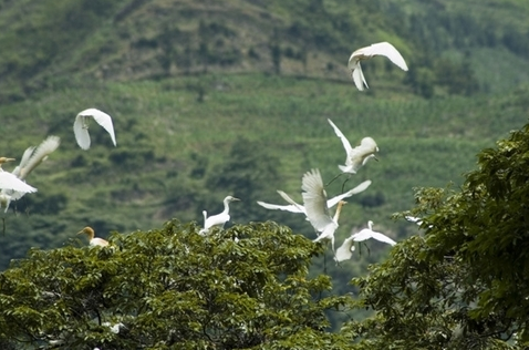 現在,鳥兒最多時,達到六千只以上。白鶴、灰鶴等季鳥每年十一月遷徙到南方過冬。來年的六月份又飛回來繁衍后代,其它的鳥類則定居下來。每當夏秋的早晚,鳥兒傾巢飛出,情景頗為壯觀,到處都是鳥聲,到處都是鳥影。白鶴早出晚歸,而灰鶴則早歸晚出,形成了一道獨特的風景線。當人們穿行于繁密的樹林中,鳥鳴聲不絕,聲聲悅耳。倘若你中午上山,定會看到群鳥在池中洗澡、游玩。還會看到各種小鳥跳躍于樹叢間,或高或低,或左或右,看清了這只,那只瞬間又躍過你的視線,落在另一根樹交叉,令你目不暇接,流連忘返。